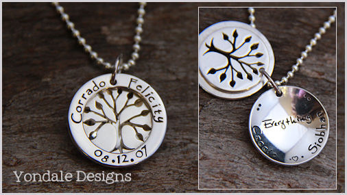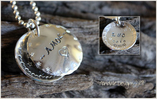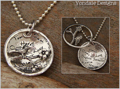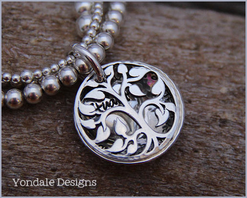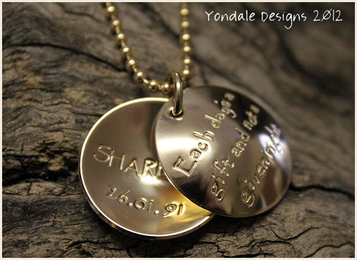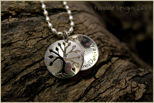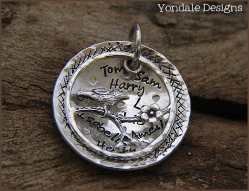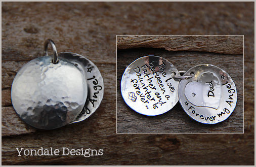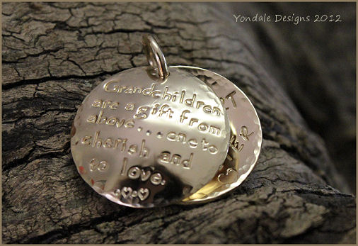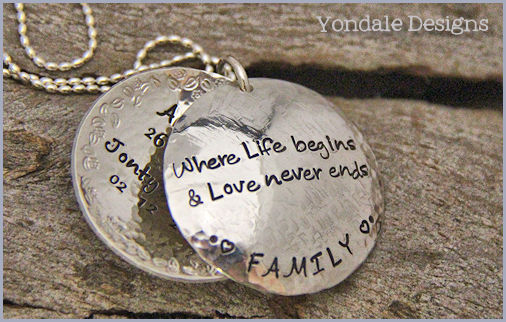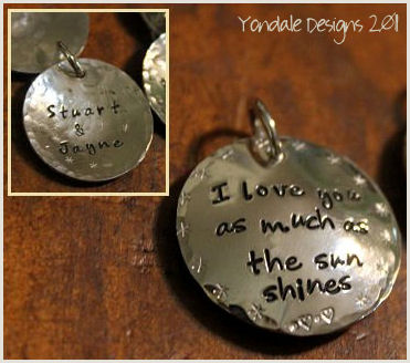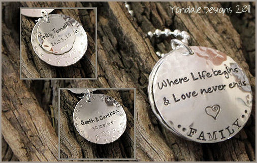 silver disc custom stamped with a personal message, family