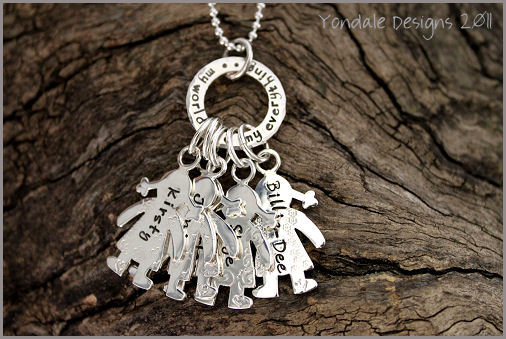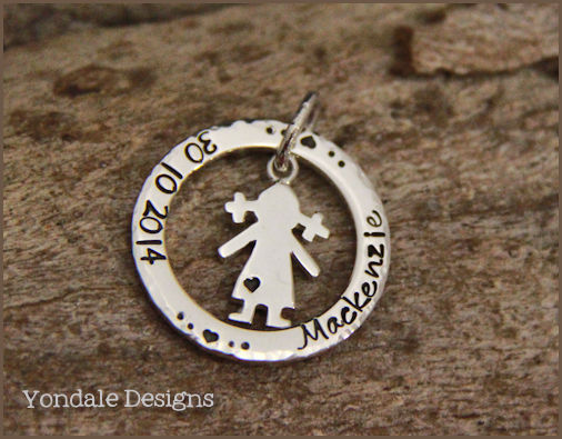 No Texturing. Script font. Stamping darkened Customer's own chain.