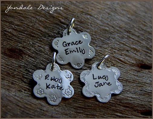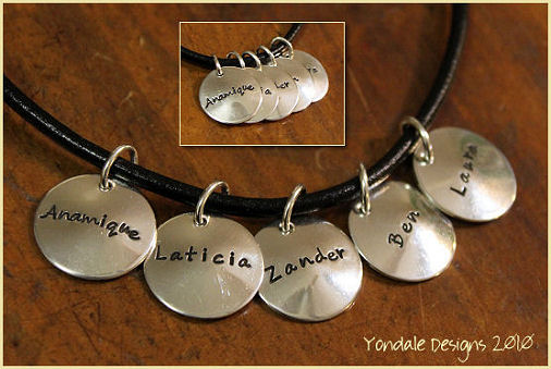 Custom order - discs slightly domed. Script font.