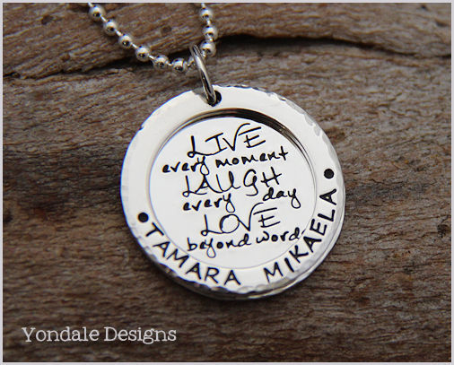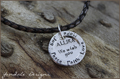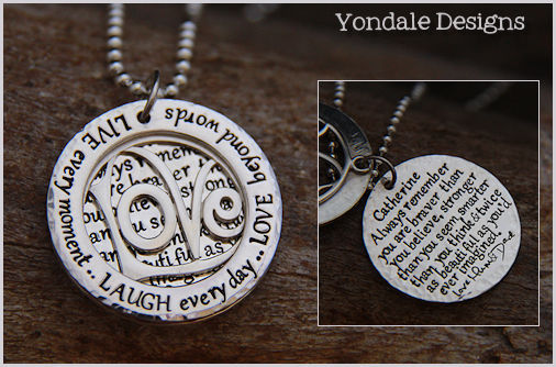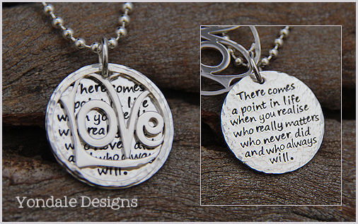 thick silver pendants inscribed with quotations that would